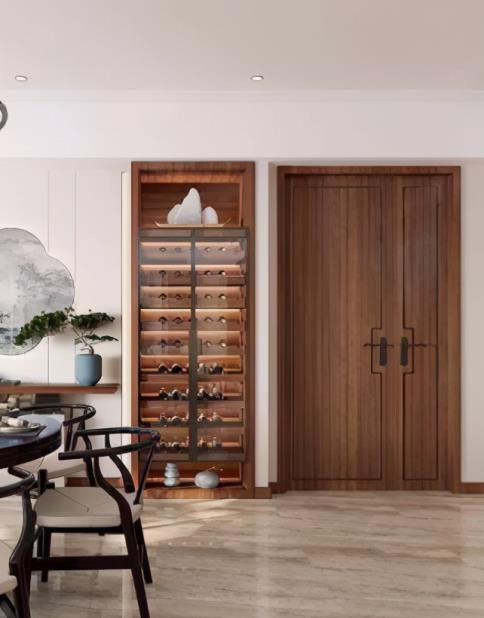 新中式木門大多采取實木成為原料,低檔的木門更會應(yīng)用原木。除了視覺的享受,更可認知華夏博大的文化。